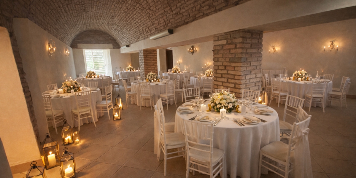 Al piano inferiore si trova la suggestiva Sala Grotta, con soffitti a volta e mattoncini a vista, perfetta per trasformarsi in area lounge o pista da ballo. La presenza di una sala a vetri affacciata su giardino e piscina, zona bar e cucine attrezzate rende l’organizzazione fluida e funzionale.